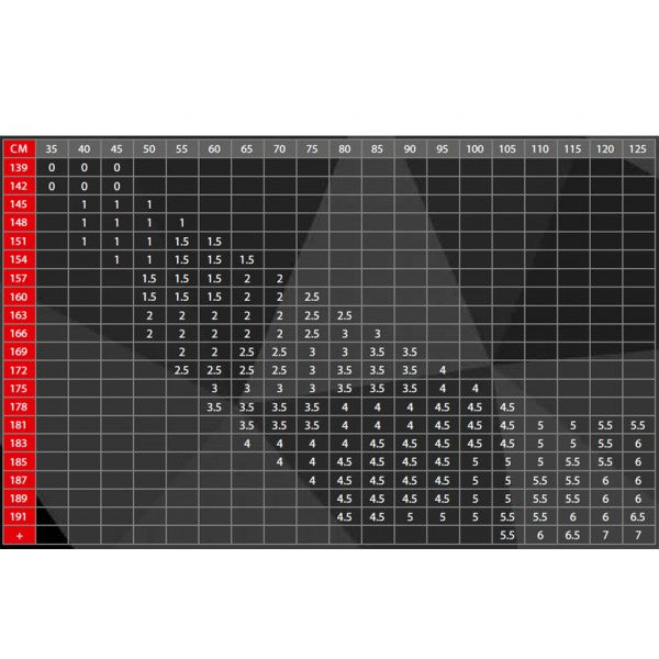 | TALLA JUDOGI | 1 | 1,5 | 2 | 2,5 | 3 | 3,5 | 4 | |