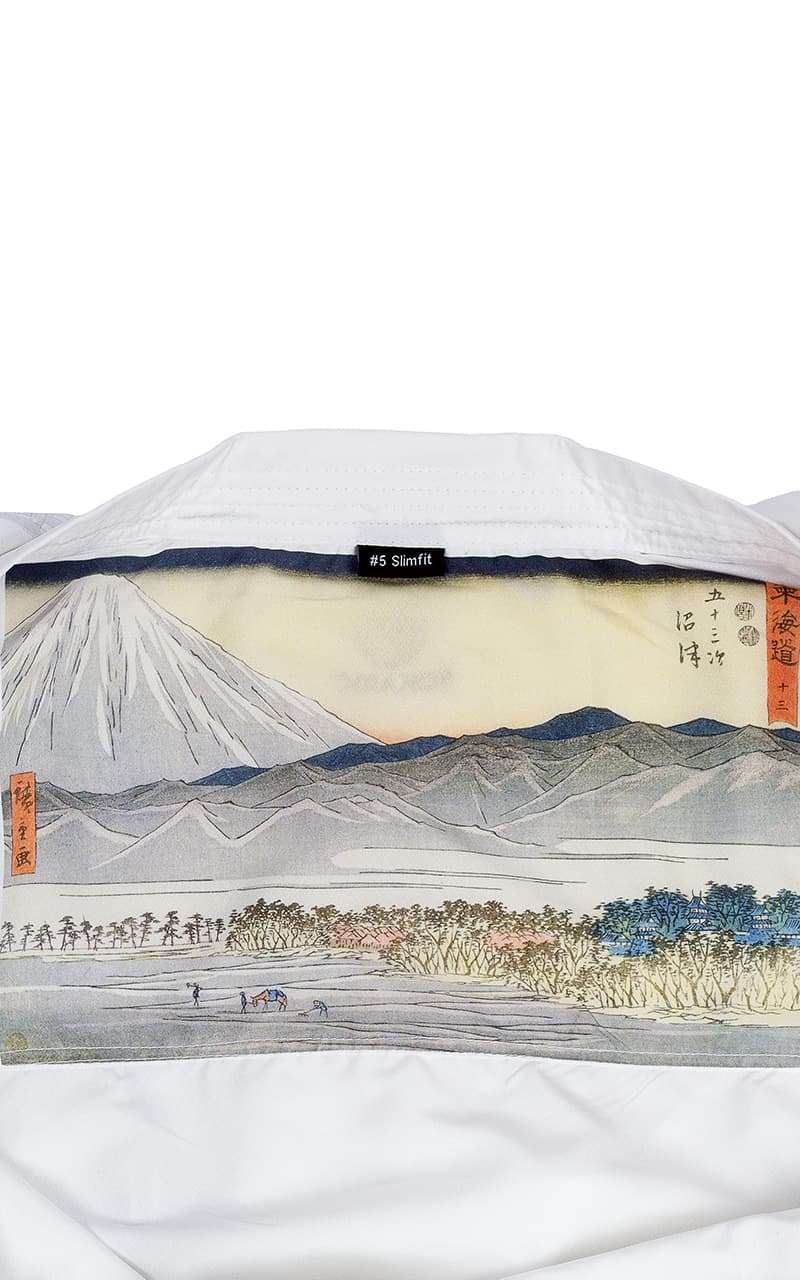 Detalle Estético: El uniforme brilla con un blanco luminoso bajo los focos gracias al típico tono azulado de la tela japonesa. En el interior de la chaqueta hay una gran estampación tradicional japonesa.