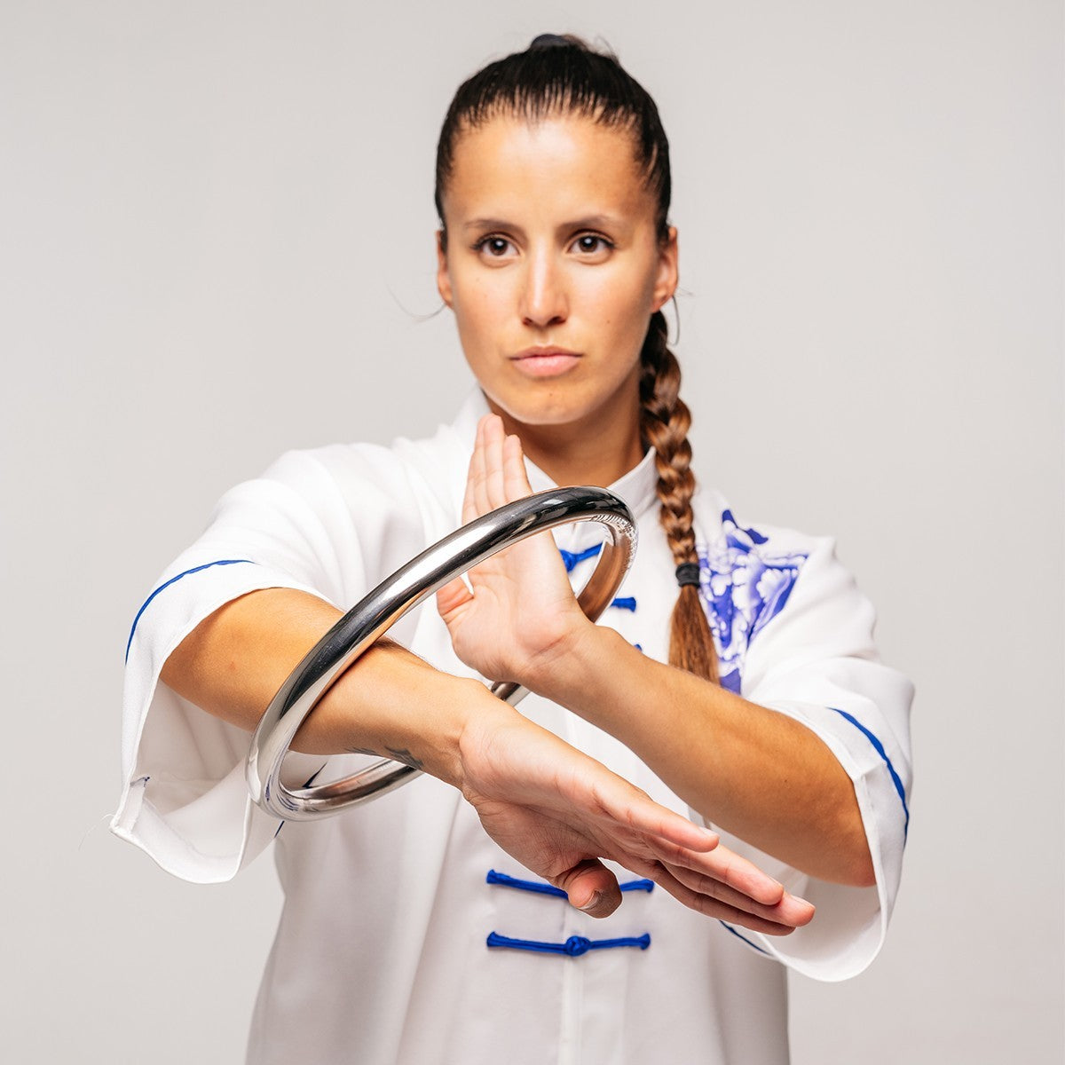 The Wing Tsun Ring is the ideal accessory for athletes and practitioners looking to strengthen their wrists and shoulders and improve their flexibility. Made of chromed steel, this Fujimae brand ring is an essential tool for Wing Tsun practice, allowing you to develop the strength and power of your strikes.