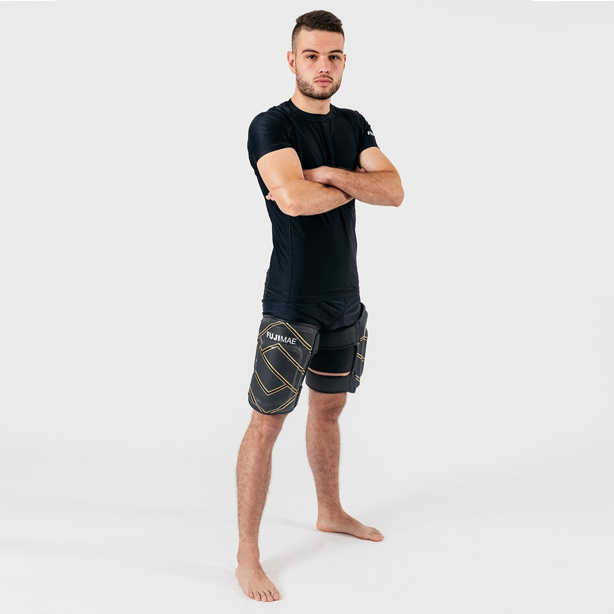 • Thigh Guards: The perfect tool for training leg kicks, essential in disciplines like Muay Thai and kickboxing. Our thigh guards offer sturdy padding and an ergonomic design that absorbs the hardest impacts, protecting your legs and allowing you to withstand prolonged training sessions.